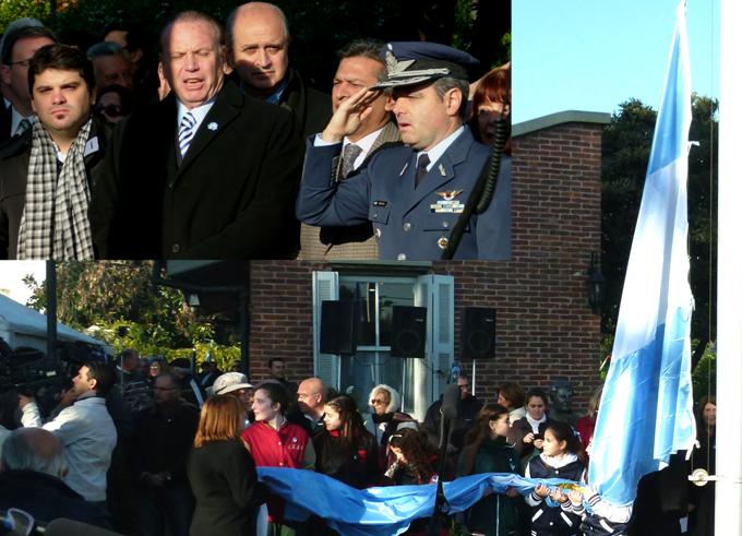 las banderas de ceremonia. Luego, se presentaron ofrendas florales al busto de Juan