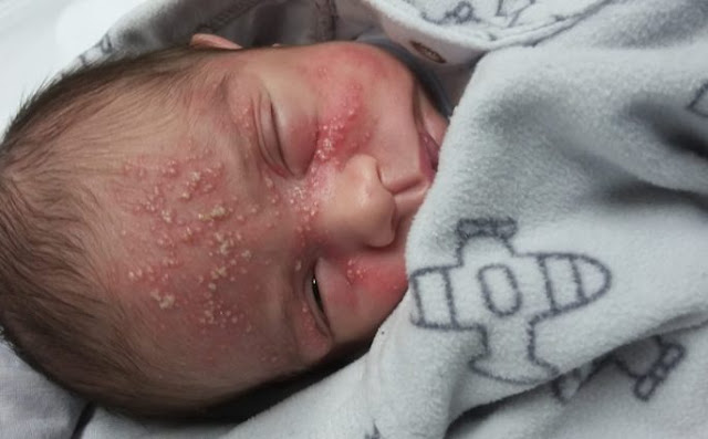 Las vesículas cutáneas son frecuentes con uno u otro tipo y, globalmente, se observan en alrededor del 70% de los casos. Los recién nacidos sin vesículas cutáneas suelen tener enfermedad localizada en el SNC. De no mediar tratamiento, los recién nacidos con enfermedad cutánea o mucosa aislada suelen evolucionar dentro de los 7-10 días a formas progresivas o más graves de la enfermedad.